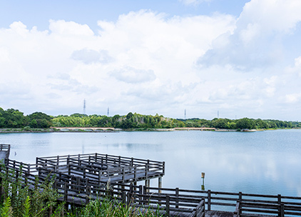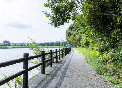 ウォーキングやジョギング、植物観察も楽しめる勅使水辺公園。