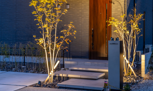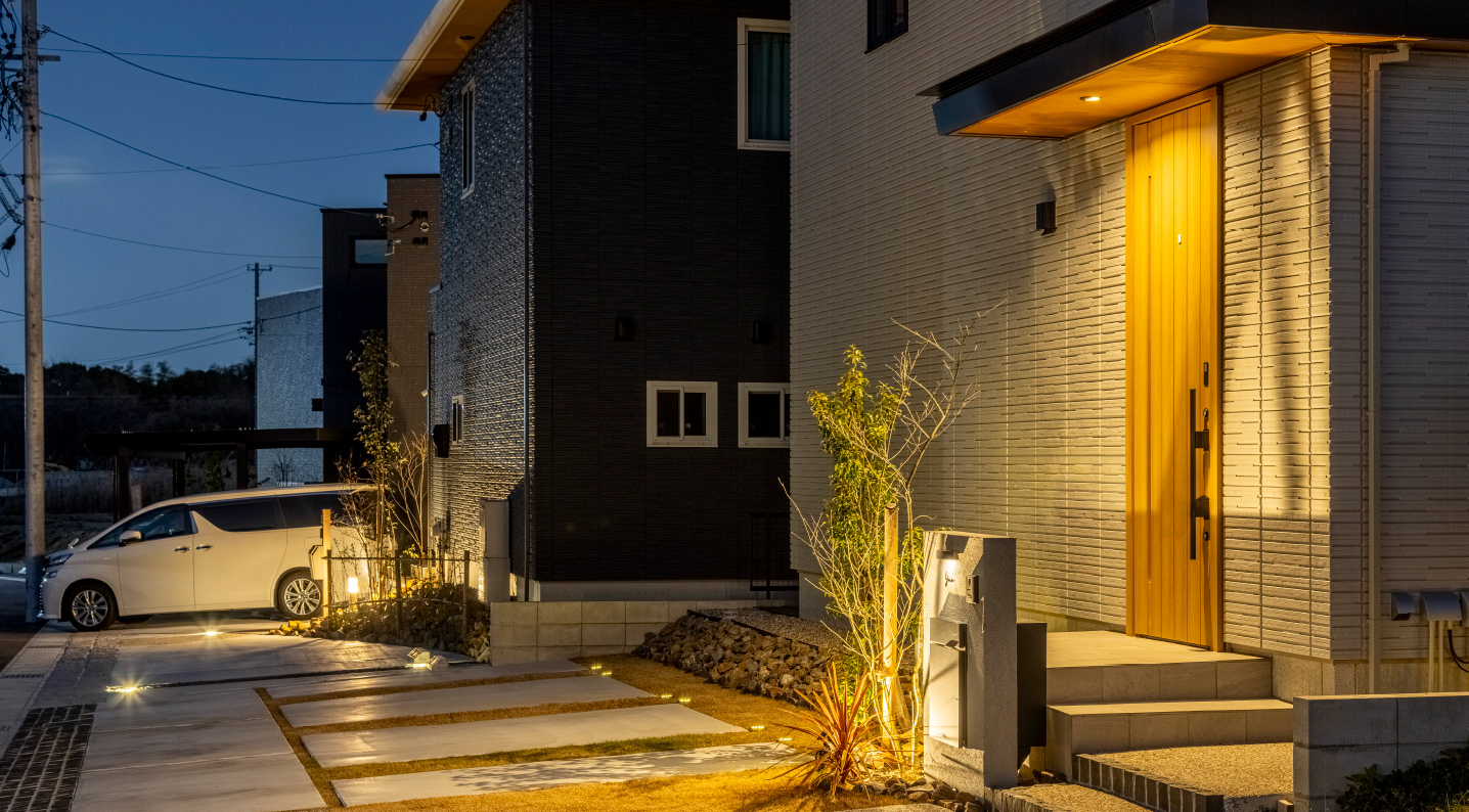夜間の防犯対策として、門灯やアプローチ照明を標準装備。街全体の安全性を高め、住む人の安心を支えます。