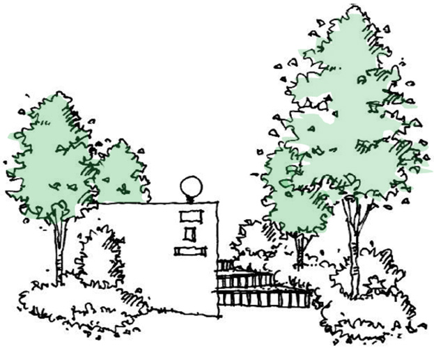 各邸宅にはシンボルツリー(3m以上の樹木)を1本、中高木(2m以上)を2本以上植栽。緑豊かで潤いのある住環境を形成します。